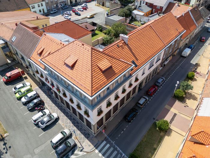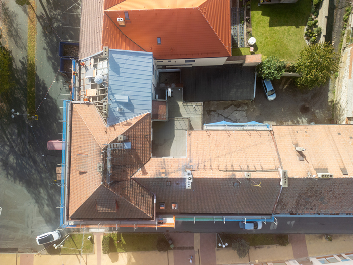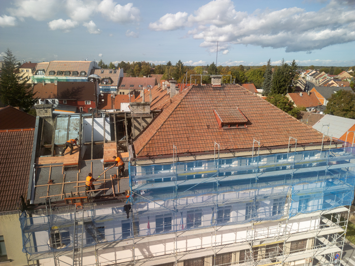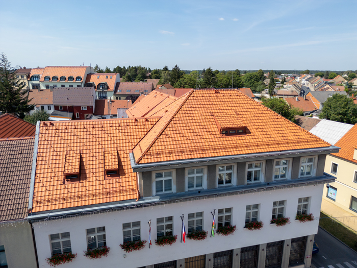 Rekonstrukce střechy Městského úřadu v Novém Strašecí byla projektem, který kladl důraz na precizní řemeslné zpracování i výběr kvalitních materiálů.Jednalo se o sedlovou střechu, jejíž obnova probíhala s ohledem na dlouhodobou funkčnost, estetický dojem a respekt k architektuře veřejné budovy.V rámci rekonstrukce došlo k odstranění původní krytiny, revizi a opravě střešní konstrukce, instalaci nového izolačního systému a následné pokládce nové krytiny. Hlavní část střechy byla osazena tradičními pálenými taškami, které zajišťují dlouhou životnost a přirozený vzhled. V části objektu byla použita plechová střecha, která vhodně doplňuje celkový technický i vizuální koncept.
