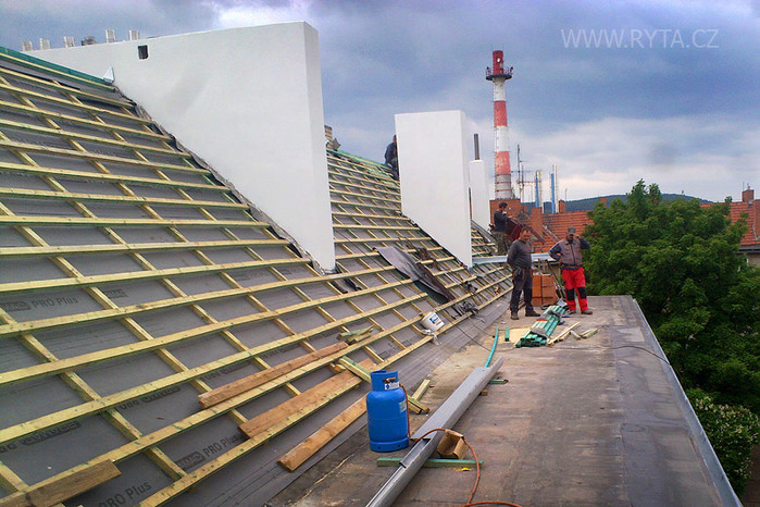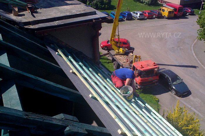 Úvod > Reference > Rekonstrukce střechy bytového domu - Rokycany, Barákova 758, 759.