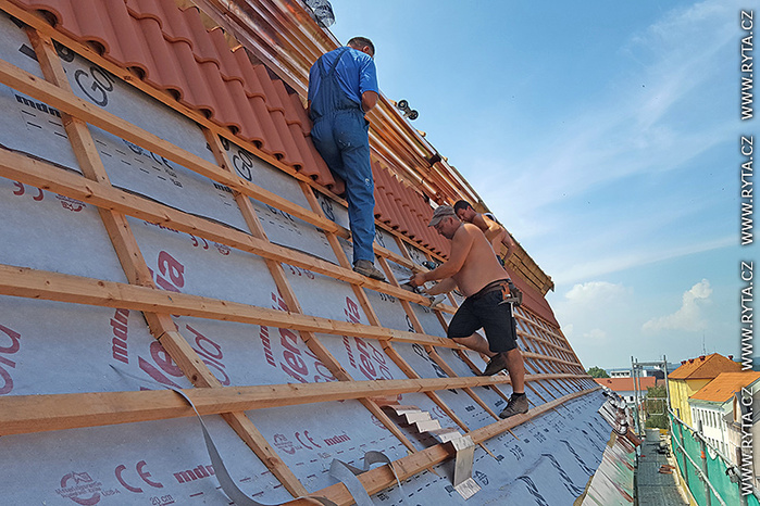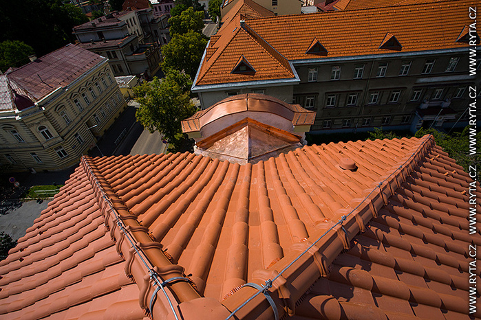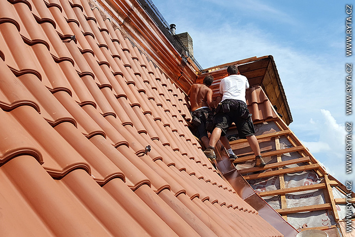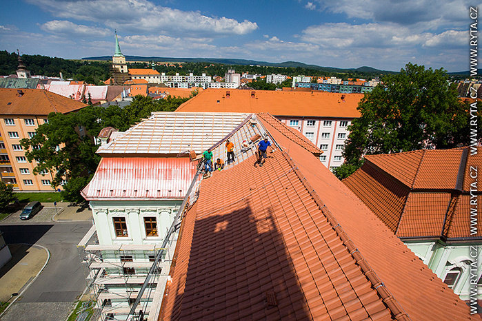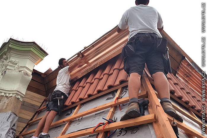 Původní prejzovou (1904) a hliníkovou krytinu (1986) dnes nahrazujeme pálenou Románskou taškou TONDACH.