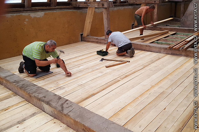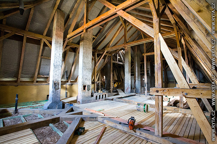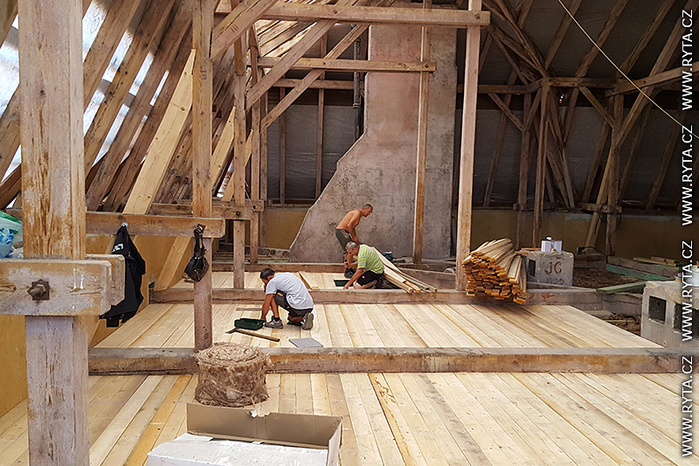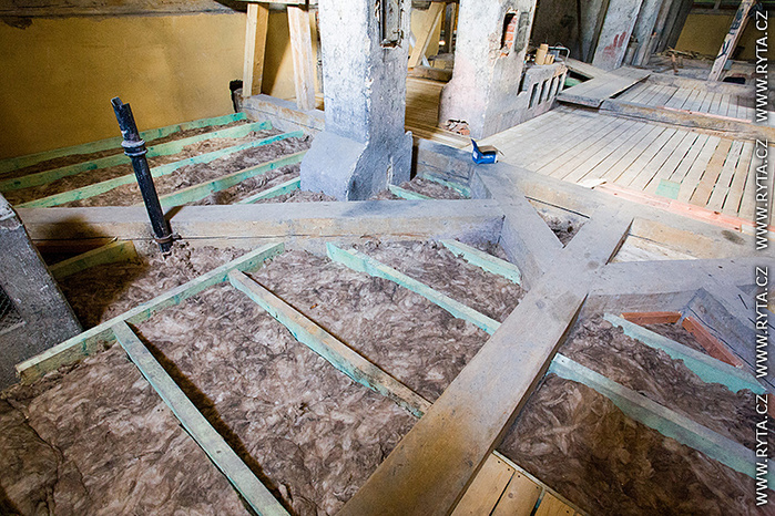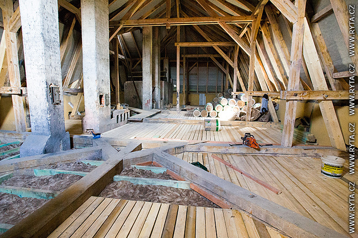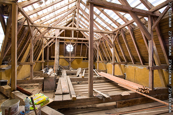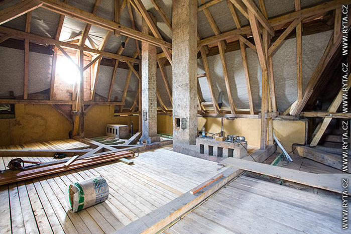 Součástí prováděných prací je sanace prvků krovu poškozených dřevokaznými škůdci, navíc v celém prostoru půdy dochází k odstranění původní podlahy a budování nové, včetně její tepelné izolace.